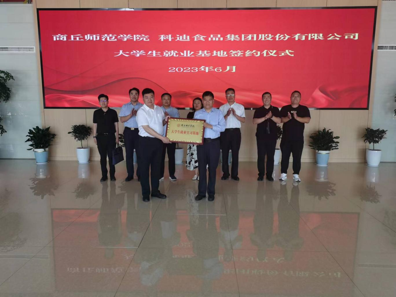 6月9日,科迪食品集團股份有限公司與商丘師范學院舉行“大學生就業(yè)基地”簽約儀式。商丘師范學院黨委副書記吳金山、黨政辦公室副主任馬磊、經(jīng)濟管理學院黨委書記張彤、副書記唐堯崢、投資系主任張時坤,科迪集團黨委書記、董事長李瑞生,黨委委員、副總經(jīng)理高宇飚,黨委委員、紀委書記趙恰,黨委委員、副總經(jīng)理范乃超出席簽約儀式。